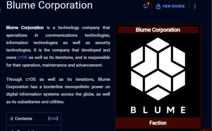It’s interesting to note that in the “fictional” Watchdogs universe, the primary facilitator of the tech revolution is a company called Blume.