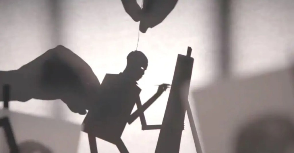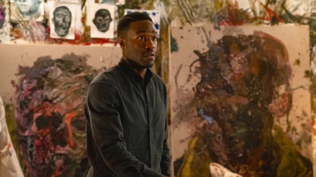 Later in the film, Anthony is possessed by the demonic Muse known as Candyman, and we see his art, and sanity, take a sinister turn.